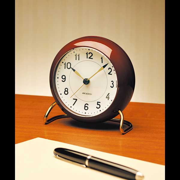 ARNE JACOBSEN TableClock STATIONアルネヤコブセン・テーブルクロック・ステーション バーガンディ 限定カラー 置き時計 ROSENDAHL COPENHAGEN (ローゼンダール・コペンハーゲン) 今回、限定復活したカラー「バーガンディ」は、 当時の技術では実現する事が困難であった純度の高い「黒」、 時が立っても色褪せることのない「白」、 当時ヤコブセンと共に製造を行っていたラウリッツ・クヌーセンが埃や機械の油など、 環境の整っていない中でこの美しい色をどのように実現したかは 今でも謎に包まれています。