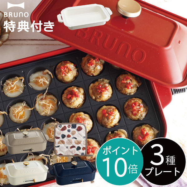 本体&2種プレート【数量限定特典+選べる特典+レシピブック】ホットプレート ブルーノ 一人用 たこ焼き 焼肉 鍋送料無料 P10倍【あす楽14時まで】bruno コンパクトホットプレートたこ焼き器 家電◇結婚祝い ホット おしゃれ プレート 蓋