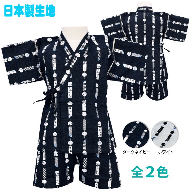 キッズ甚平 80cm・90cm・95cm /男の子用/子供甚平/こども甚平/ベビー用/子供用/白色/紺色/パジャマ/夕涼み会/夏祭り/シンプル/渋い/北欧風/北欧/魚/麻の葉/風鈴/古風/【メール便OK】【小型宅配便OK】