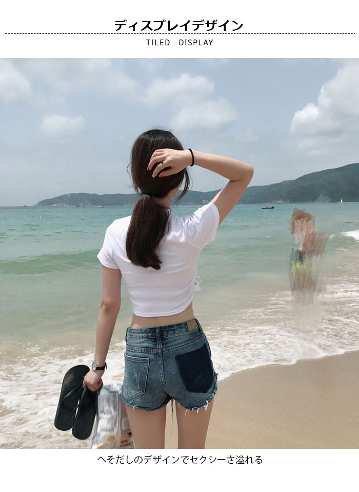 Tシャツ レディース カットソー へそだし 半袖Tシャツ ショート丈Tシャツ 薄手 レディースファッション ダンス 衣装 夏服 クルーネック リボン付き フリル トレンド セクシー 人気 新作 お洒落 個性的