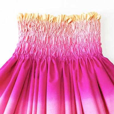 パウスカート 4本ゴム 67cm/72cm/77cm ボーダー グラデーション〈ピンク&イエロー〉ハンドメイド【送料無料】ハワイアン フラダンス 衣装 4ヤードパウ 日本製